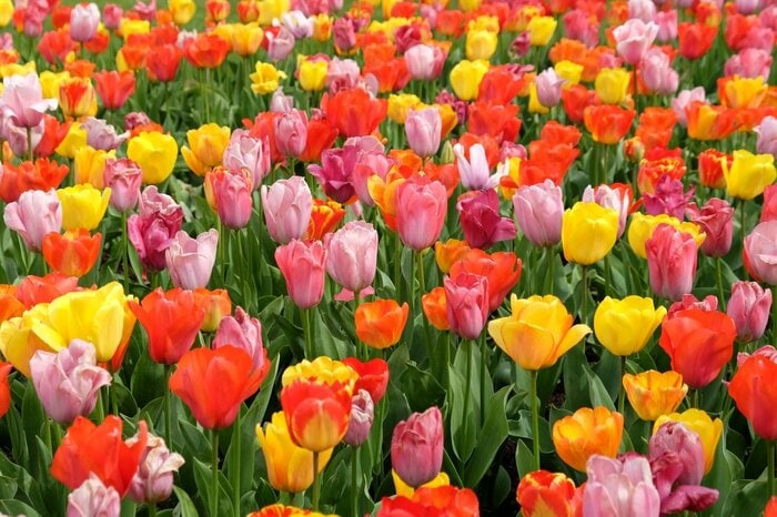 春に咲く花の代表格ともいえるチューリップ。童謡でお馴染みの赤・白・黄色のほかにもピンクやオレンジ、黒系や複色などカラフルな花色が揃っています。