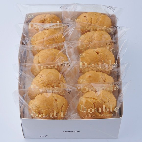 北海道産の純生クリームを使用したホイップクリームと、契約農家から仕入れる自社特別飼育卵を使ったカスタードクリームを使ったダブルシュークリームです。