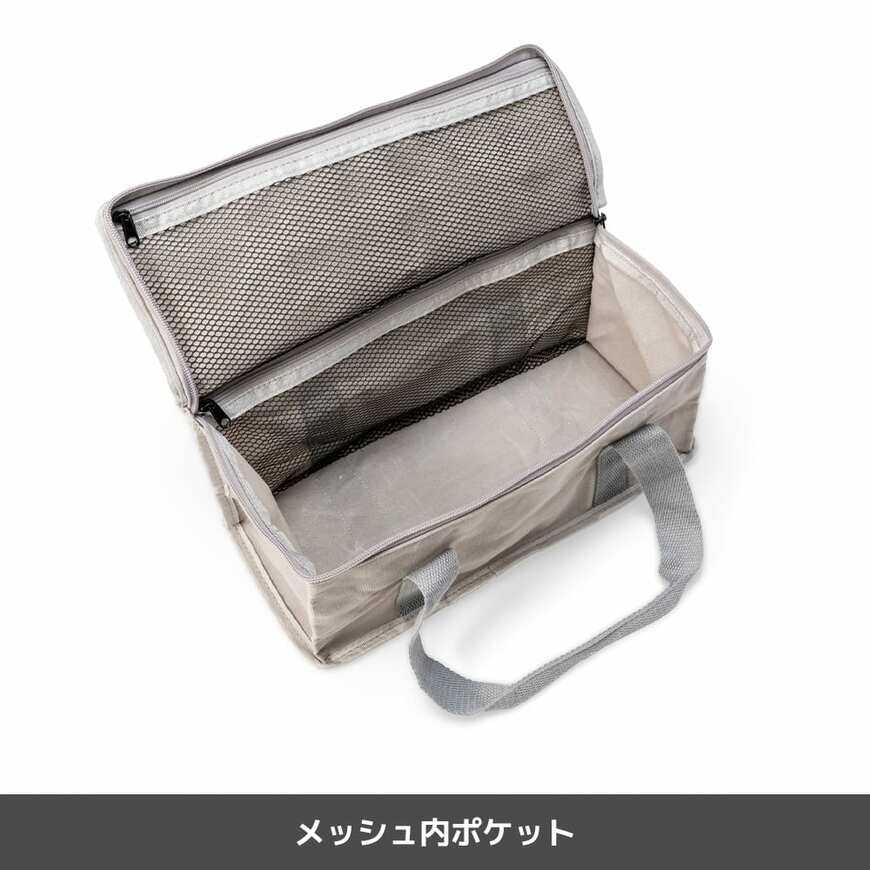 キャンプやピクニックなどに使える、ファスナー付きのバッグです。バッグの両側に持ち手がついているため、安定して持ち運ぶことができますよ。