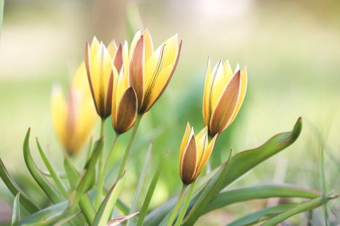 背丈が低くシンプルな花姿が野趣あふれる原種チューリップ。ソフトカラーがナチュラルガーデンにピッタリです。