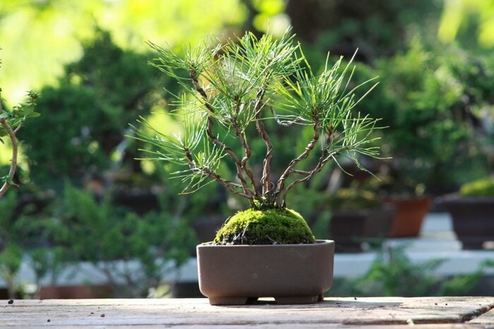 鋭い葉を真っすぐに伸ばす姿が凛々しい松は、盆栽デビューにオススメの樹木。さまざまな種類があるなかでも、葉が短く成長が緩やかな「五葉松」、幹が黒くて厳格な雰囲気がある「黒松」は育てやすい人気の品種です。