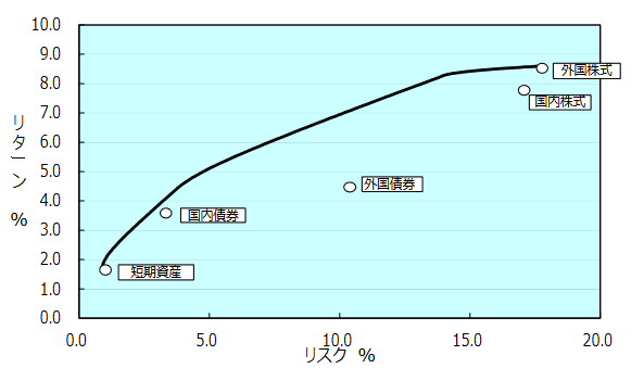 例えば、一般的に外国株式はリスクが高い分、大きなリターンを狙いやすいです。一方で、国内債券はリスクが低い分、期待できるリターンも少ないです。【図表3】