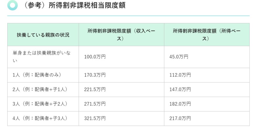 なお、住民税非課税になる年収の目安は、級地区分※や、扶養家族、年齢などの影響を受けます。