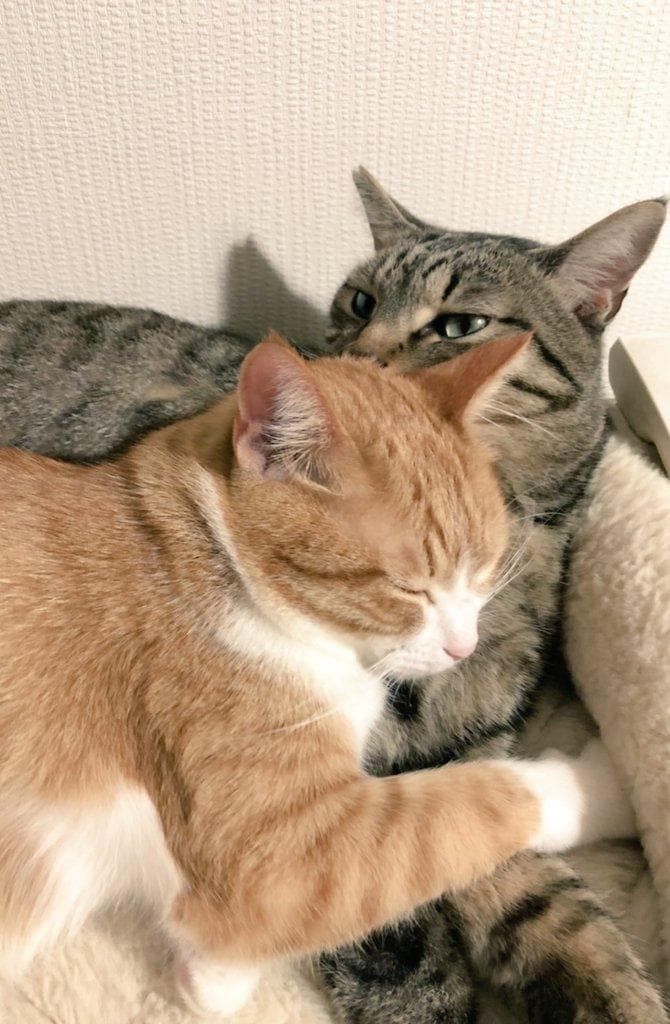 クールな兄猫さんと、たっぷり甘える妹猫さんの光景がX(旧Twitter)で注目を集めています。