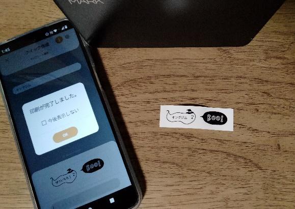 ラベルに入れたいワードを入力して、手紙マークの送信ボタンをタップすれば印刷が始まります。細かい調整不要で、欲しいラベルがすぐにできあがります。
