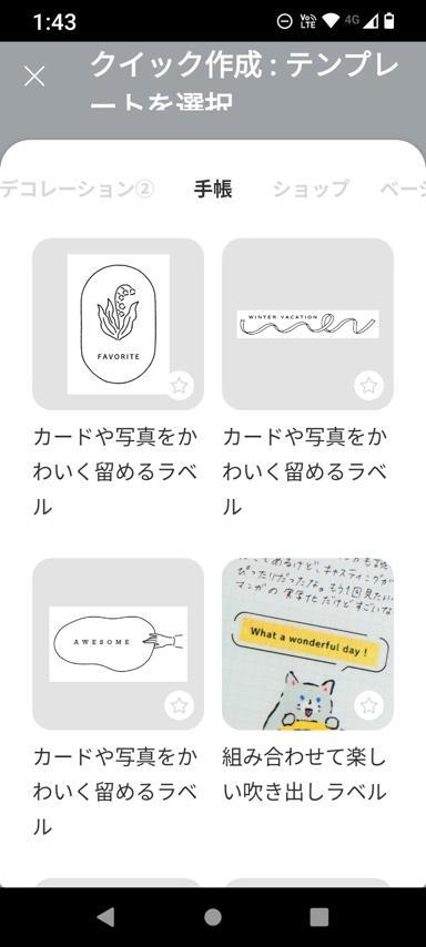 細かい編集作業などが不要で、感覚的にラベルを作成していくことができます。テンプレートは、「手帳」や「ショップ」で使えるものなど、バリエーション豊富に用意されています。