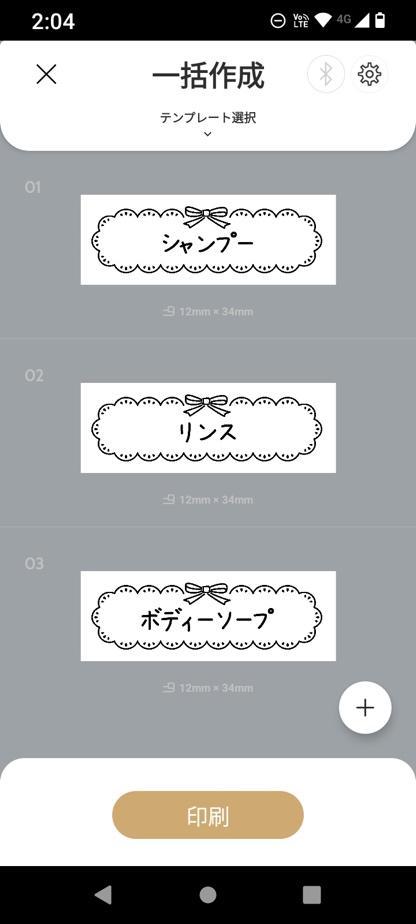 一括で作成したいラベルができたら、「印刷」ボタンをタップするだけ。オートカッター式なので、あとは操作不要でラベルが続々と印刷されて出てきます。