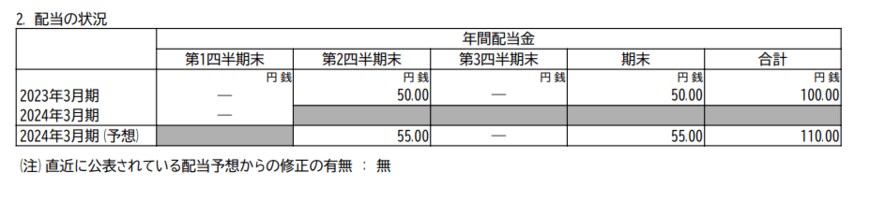 東日本旅客鉄道の株式を1年前に買い、持ち続けたとすると、「2023年3月期の期末配当と2024年3月期中間配当」の計2回を受け取ることができます。
