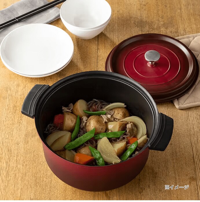 こちらは、少量の水でもおいしく調理できる鍋です。蓋の裏側に凸部がついており、蒸気の循環を発生させます。うまみ成分をしっかり閉じ込めるため、時短と味のおいしさを両方実現できるでしょう。