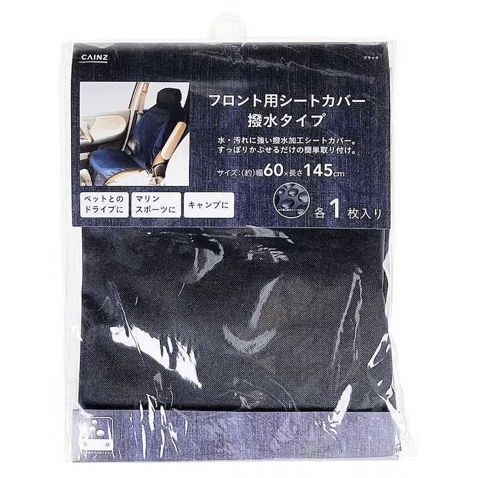 2.1 カインズ フロント用シートカバー 撥水タイプ ブラック HSF-60145BK 1枚入り(税込1280円)