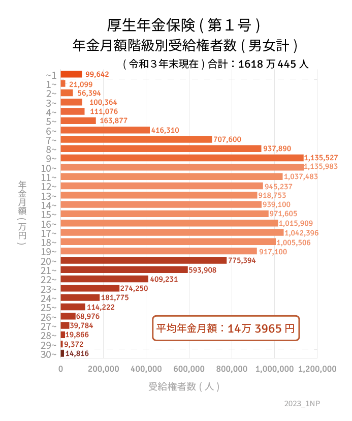 2.2 【厚生年金】男女合計の平均年金月額(1万円刻みで確認)