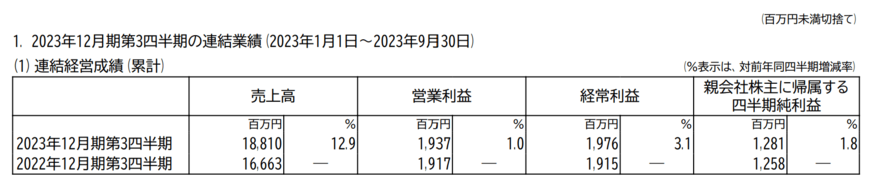 B-R サーティワン アイスクリームは、2023年10月20日、2023年12月期第3四半期連結決算を発表しました。