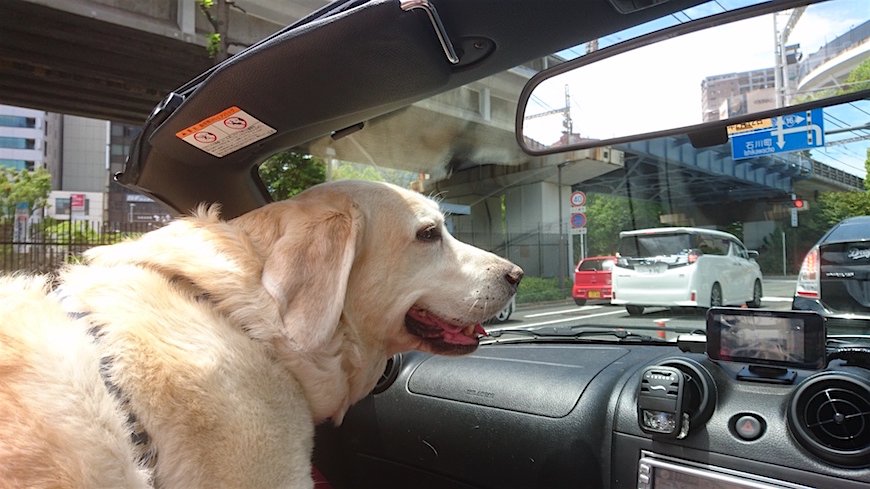 横浜への帰り道、行きの時はあんなに興奮してずっと鼻先を出していたのに、すっかり満足したのか、はたまたくたびれきったのか、リアシートで鼻息を立てて寝ている姿を見ると、連れて来てよかったなあとつくづく思う。