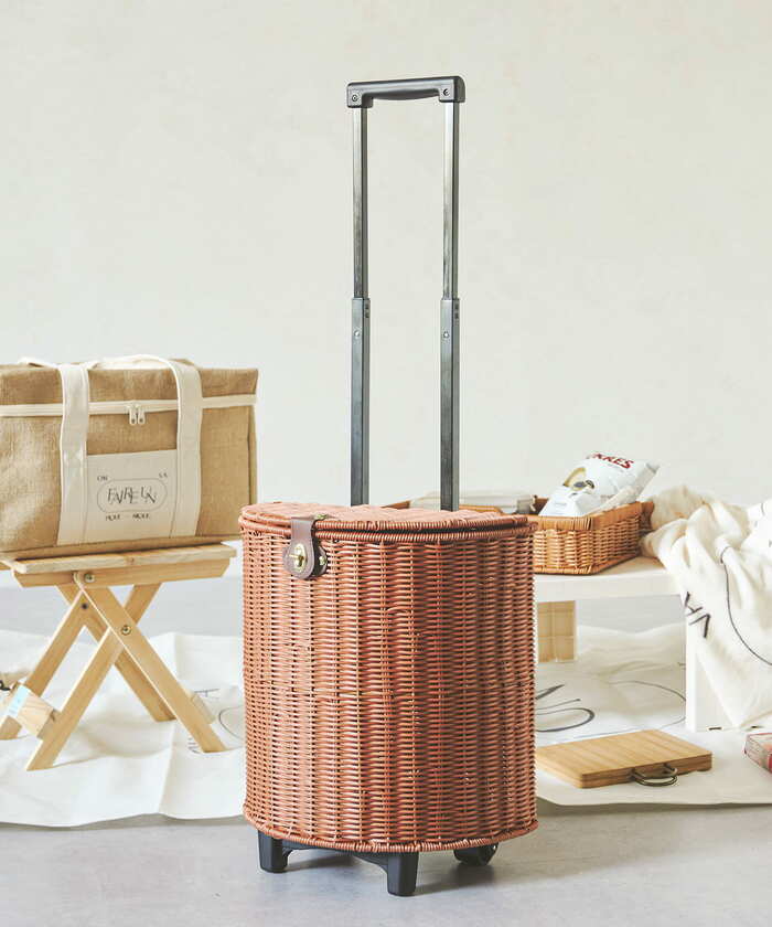アウトドアなどの持ち物の持ち運びに便利なラタンキャリーです。汚れが拭き取りやすく、お手入れが簡単なPPラタン素材。ラタン調がかわいらしい印象を与えてくれます。耐荷重は5kgで、重たい飲み物やお弁当を運ぶのにもぴったりですね。