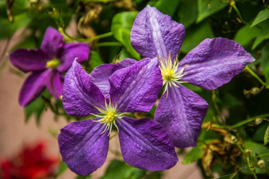 「和モダン」テイストにおすすめのクレマチスは、つる性の多年草。気品のある花姿で世界中の人々に愛されています。