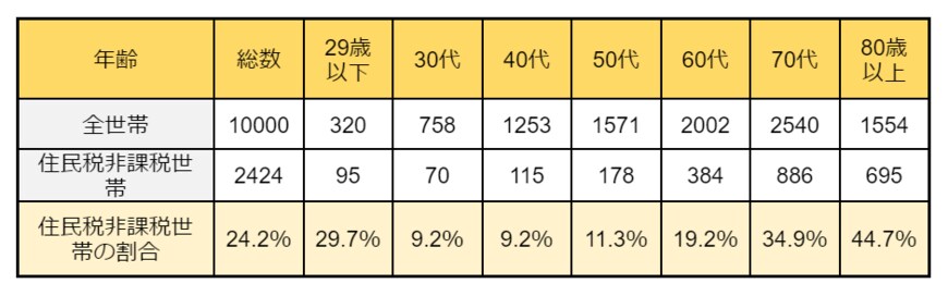 1万世帯のうち、住民税非課税世帯は2424世帯となり、割合にすると24.2%となります。
