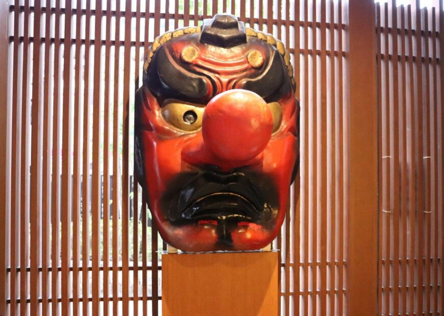 エントランスでは高尾山の守り神・天狗がお出迎え!元々は京王線高尾山口駅前にあったものですが、温泉のオープンとともに「もっと多くの人に見てもらいたい」という声があったことから、こちらに移したそうです。