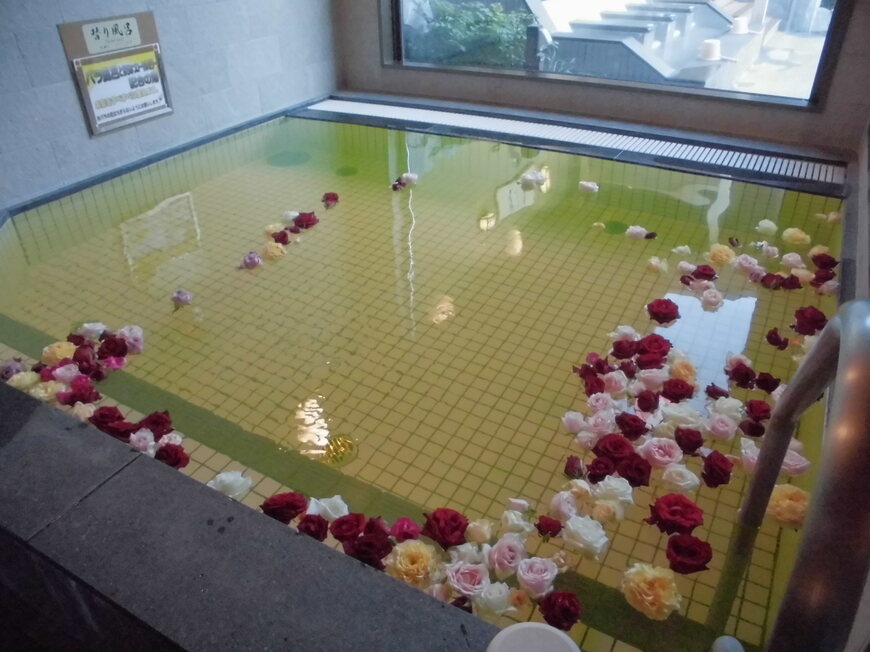 さらに季節や期間によって内容が変わる替湯も。10月はシャインマスカットの湯にしたり、開湯記念イベントでは生のバラの花びらを浮かべたバラ風呂もあったそうです。男性のお客様にも意外と好評だったとか!