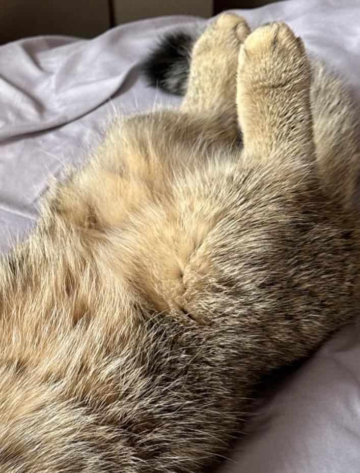 もふもふのお腹はもちろん、「チョコン」と揃った2本の足も心をくすぐる可愛さ。起床時にこんなにキュートな猫ちゃんがいてくれたら、幸せな気持ちで一日のスタートを切れそうです。