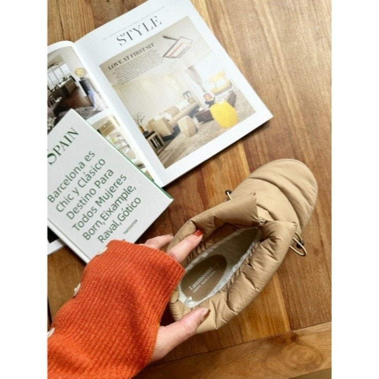 中綿入りのふっくらとした見た目がかわいらしい「ショートブーツ」です。中綿入りなので、寒い日でも、足元をあたたかくしておくことができます。