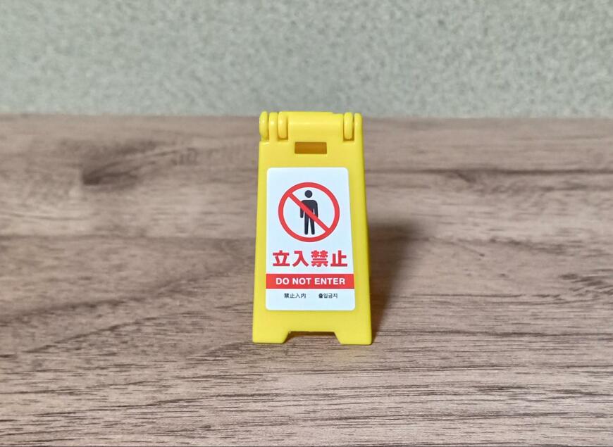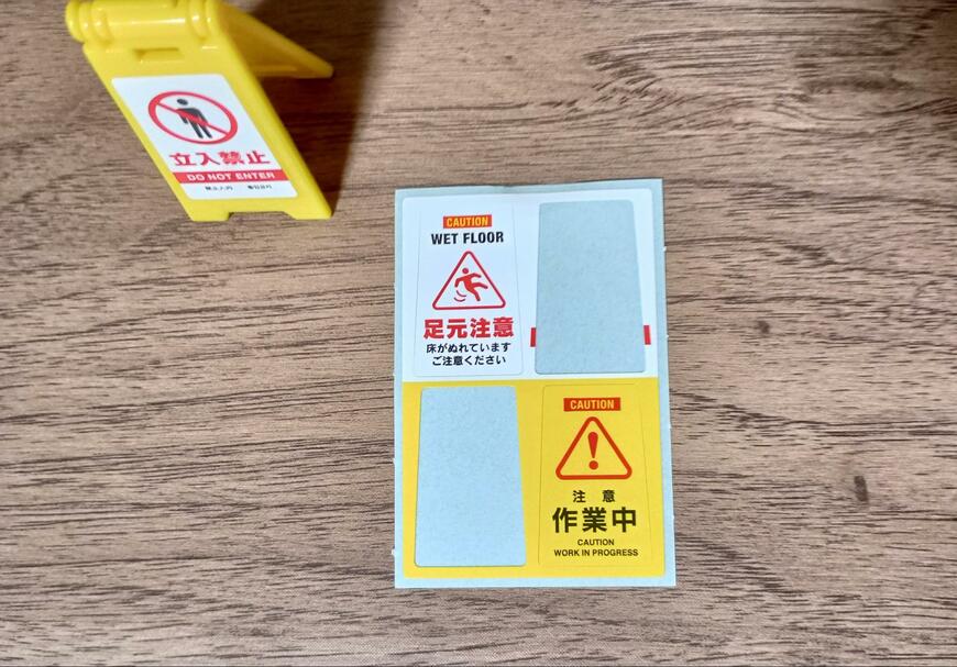 「足元注意」や「注意 作業中」といったユニークな注意書きがそろっています、ミニチュアと一緒に並べたら、面白い写真を撮影することもできるでしょう。