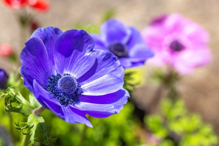 秋に植えれば早春から咲き始めるアネモネ。10センチほどの花を咲かせ、赤・青・紫・白・ピンクなどのビビッドカラーが魅力の球根植物です。