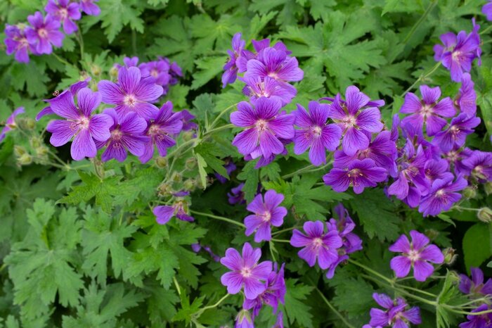 ゲラニウムは品種が多く、直立性からほふく性まで多種多様。ピンクや紫・青・白などの花色が庭を明るく彩ります。冬も葉が枯れずに地上に残る常緑多年草です。※参考価格:400~800円前後(3号ポット苗)