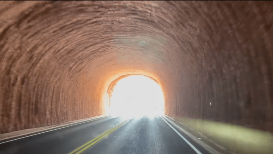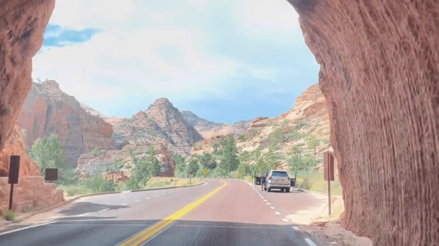 そこに収められていたのは、ドライブ中の車窓に広がる大自然の風景。トンネルを抜けた先に見える景色はあまりにも壮大で、まるでテーマパークのアトラクションに乗っているかのようです。