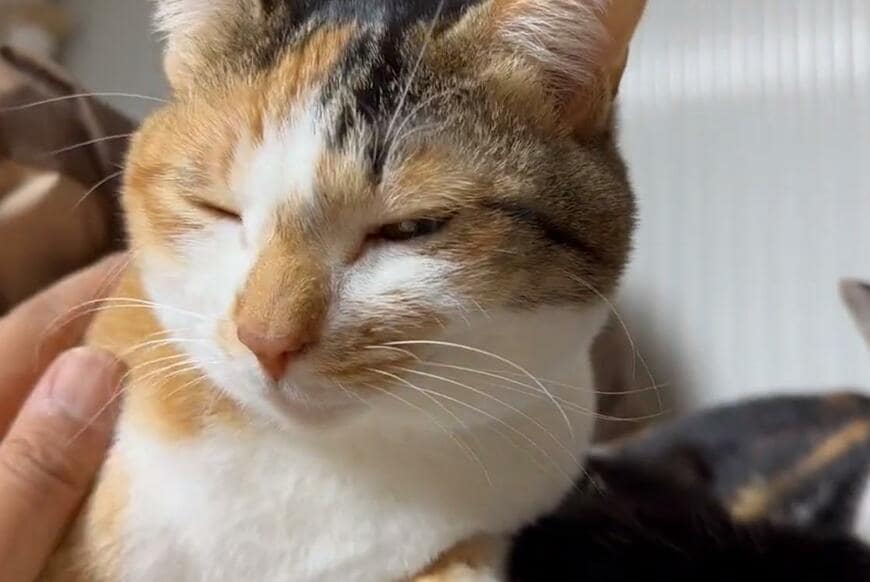 ちび太ちゃんは優しく撫でられてウットリ。満足気な表情を浮かべていますが……?