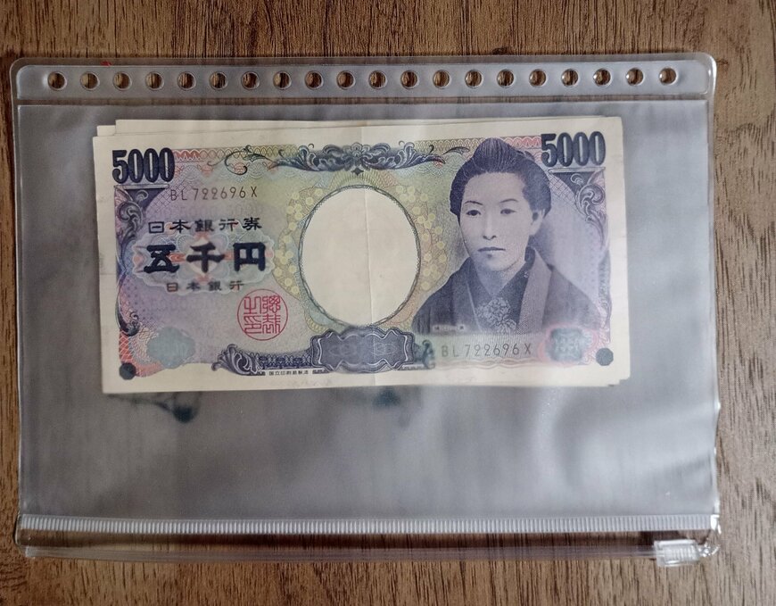 お札も入るサイズです。クリアジップケースは、4枚ついてくるので、週ごとに使うお金を収納して、家計管理に活用してもいいかもしれません。
