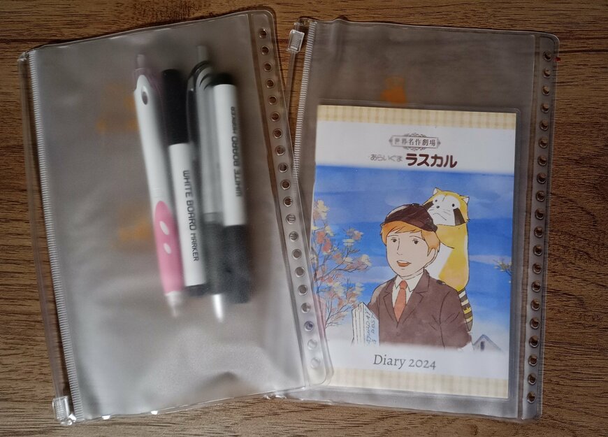 「クリアジップケース」は、ペンケースのように使うこともできます。A6サイズの手帳も収納できます。A6サイズのお薬手帳や病院の請求書などを収納して、通院用のポーチとして活用してもいいかもしれません。