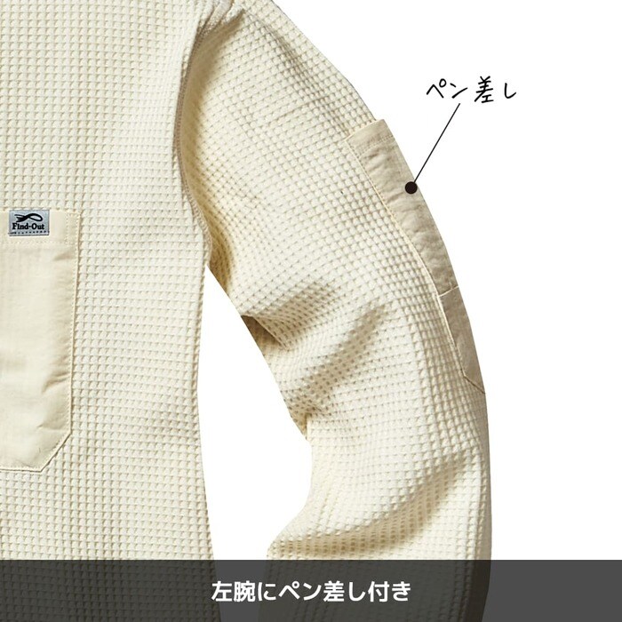 2. なんとペン差しまでついています! ワッフル素材が心地よい「長袖クルーネック」