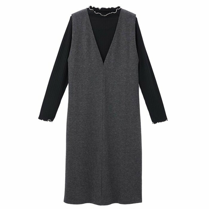 1. 着痩せ効果も期待できそうです! 税別1990円の「ジャンパースカート+プルオーバーセット」
