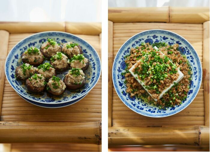 写真右は、「肉末蒸豆腐(豚ひき肉の蒸し豆腐)」。豆腐と豚ひき肉を〈蒸す〉ことで生まれる、とっておきの味わいを楽しめる一品だそう。