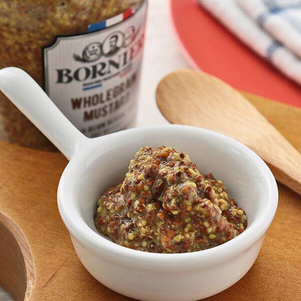 ボルニエの粒マスタードは、大粒でプチプチとしたマスタードがたっぷり!新鮮な辛味と風味で、サラダのドレッシングや肉料理のアクセントに。時間の経過とともに熟成が進み、うま味と辛味の変化も楽しめます。