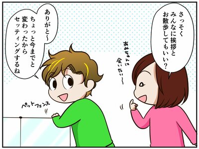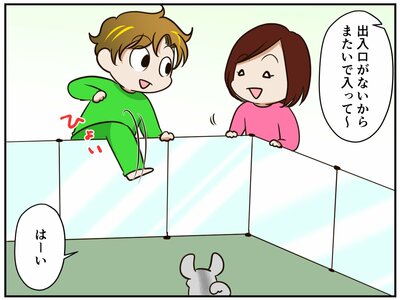ひさしぶりのご対面のためには、前回祭さんと夫さんが知恵をふり絞って設置した「ペットフェンス」をまたがなくてはなりません。