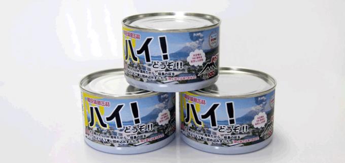 桜島の降灰量が多い鹿児島・垂水市では、市役所の屋上などに積もった灰を詰め込んだ「灰缶詰~ハイ!どうぞ!~」という缶詰を販売。