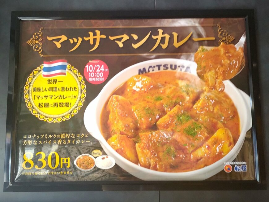 牛丼チェーン店・松屋では10月24日(火)より期間限定商品の「マッサマンカレー」を販売しています。