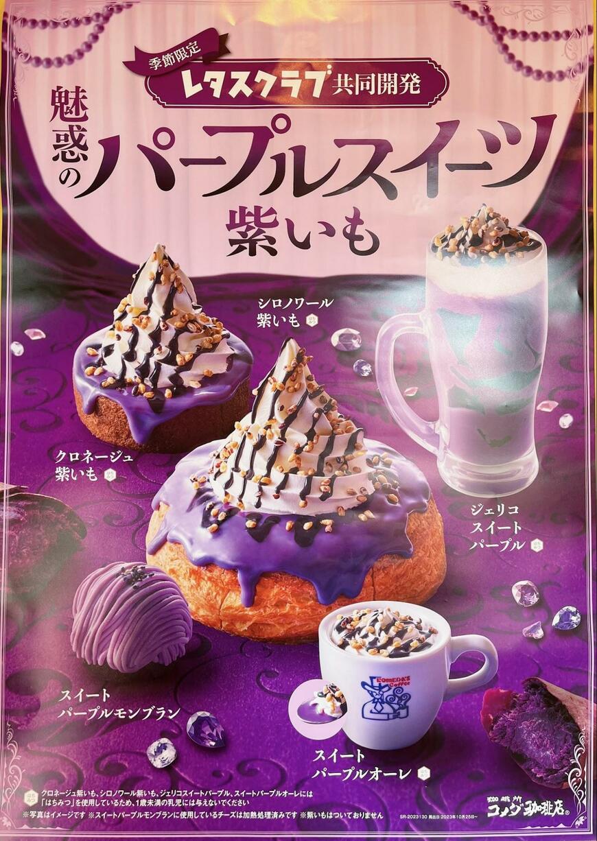 喫茶店チェーン・コメダ珈琲店では2023年10月25日より季節限定デザートメニューとして「シロノワール」から特別な「シロノワール 紫いも」が期間限定販売されています。こちらは料理情報誌「レタスクラブ」と初の共同開発。秋らしいスイーツがお目見えしました。