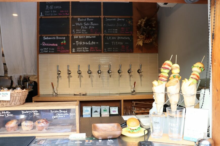 カフェ&ビールスタンドでは、東京の山側を中心にセレクトされたクラフトビールや、山に合うオリジナルブレンド豆を使用したハンドトリップコーヒー、見た目にもかわいいハンバーガーやフライドポテトなどを提供しています。