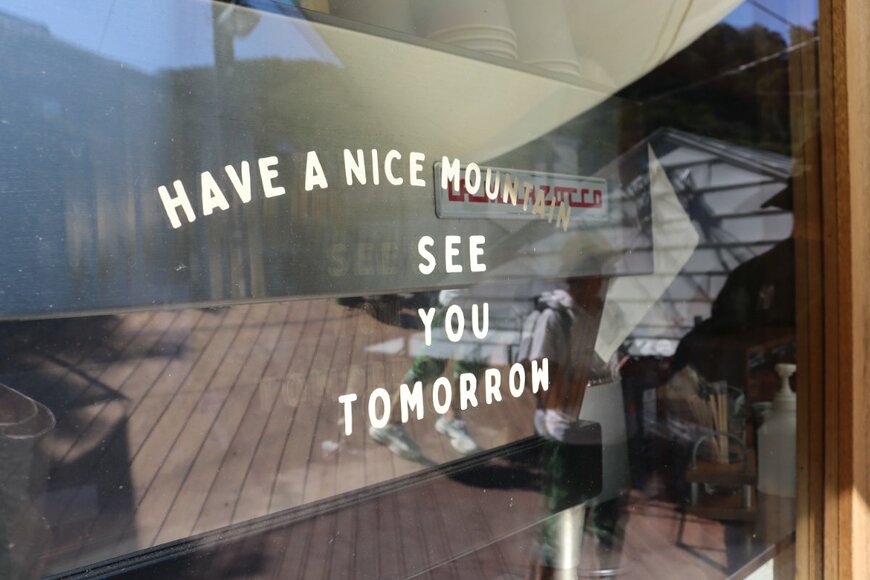 また、お店の窓を閉めると「HAVE A NICE MOUNTAIN」「SEE YOU TOMORROW」と遊び心のあるサインも。お店が閉まっていたとしても、また今度来てみようかなという気持ちになりそうですね。