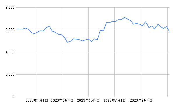 最後にソフトバンクグループの株価推移を確認しましょう。