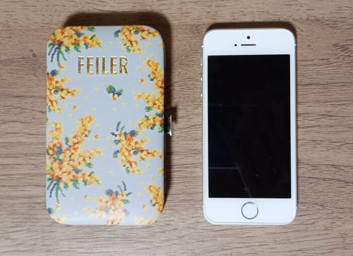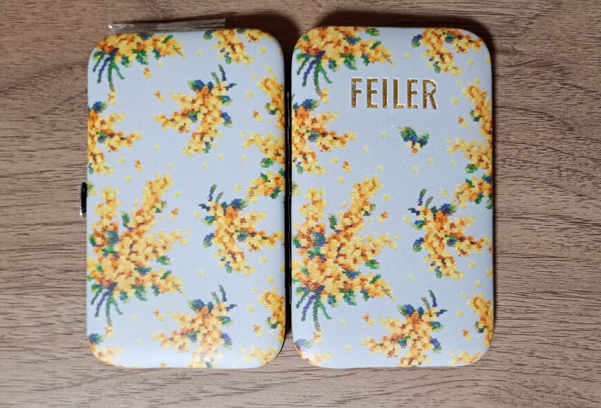 両面にミモザソラーレ柄がデザインされています。「FEILER」のロゴマークは、表面にのみついています。