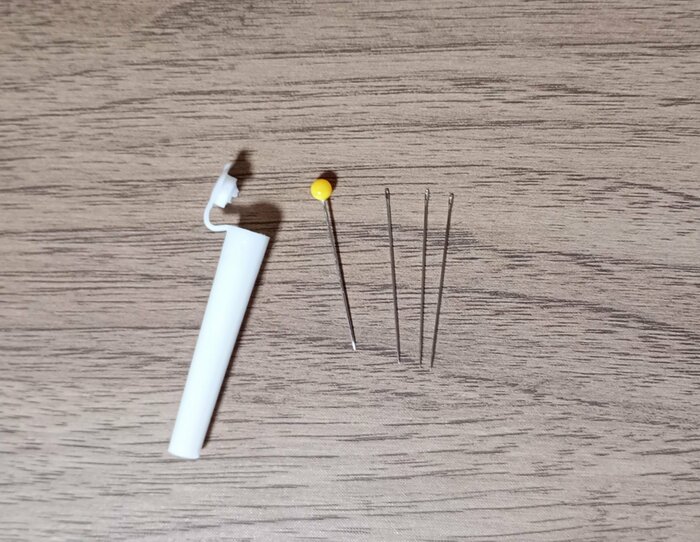 逆さに向けて、底を叩いたり振ったりすると針が取り出せます。マチ針はケースに入れないようにして使うといいかもしれません。