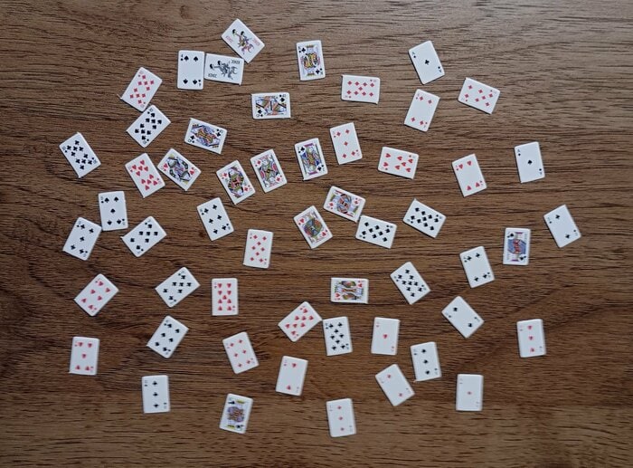 1円玉と同じくらいのサイズのトランプです。シルバニアファミリーといった人形や、ぬいぐるみ遊びに活用することができそうです。