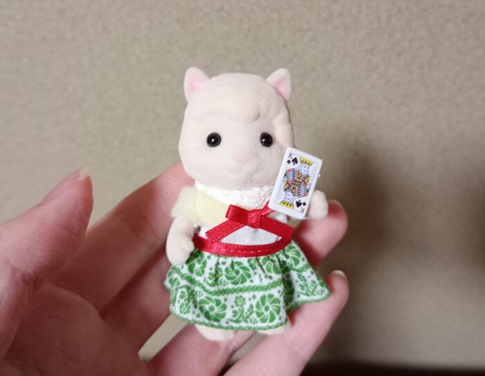 こちらは、アルパカの女の子との比較です。ややトランプが大きすぎる感じはしますが、不自然な感じはしません。