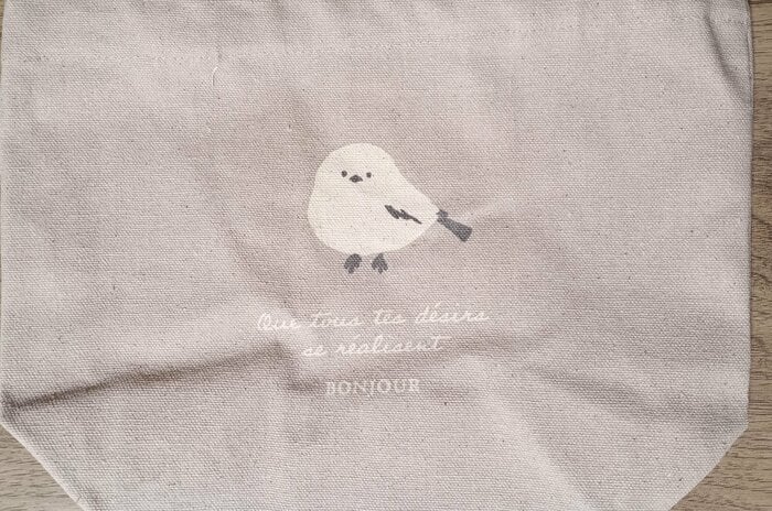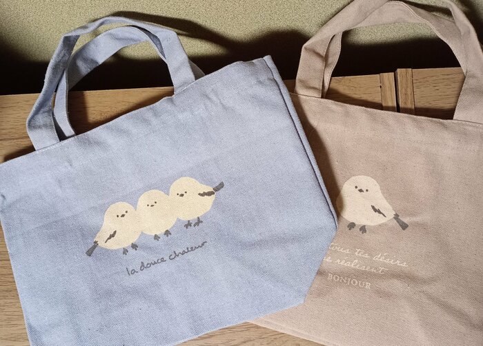 こちらはシマエナガデザインのトートバッグです。大人かわいいデザインのアイテムです。