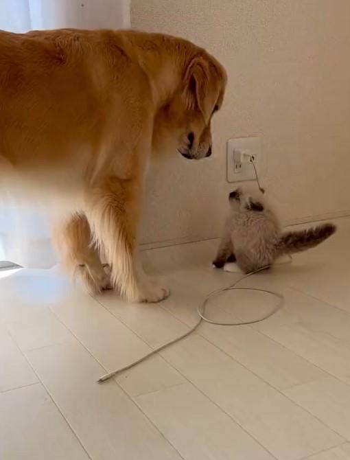 「ゴールデンレトリバーぷぅとラグドールくろすけ」というコメントとともに投稿されたのは1本の動画でした。