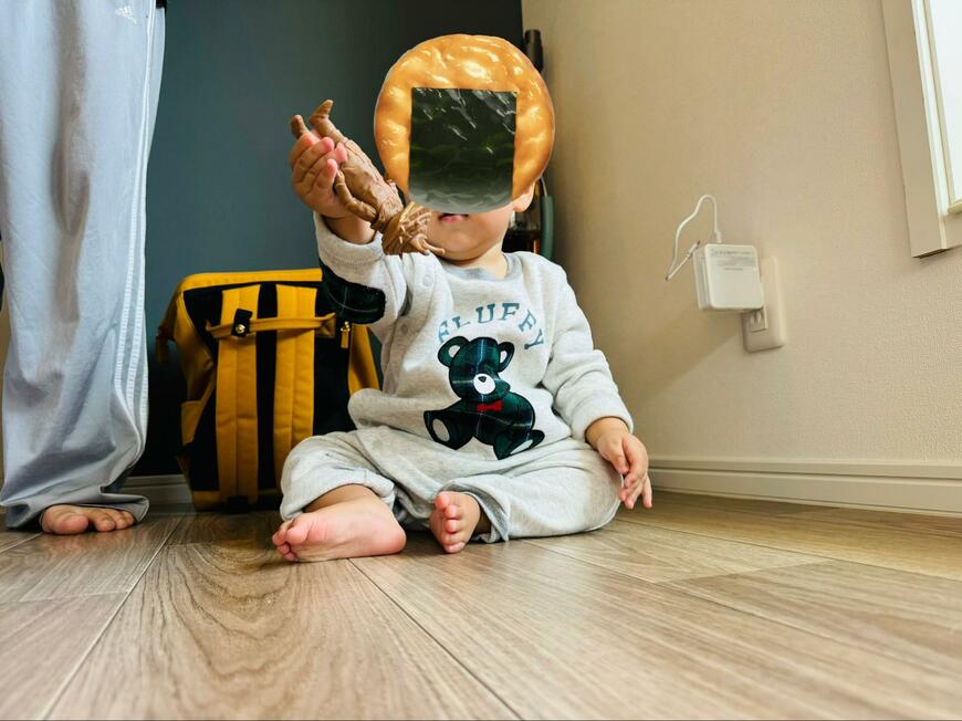 そう、息子さんはたった5日でカネゴンの恐ろしさを克服してしまったのです。カネゴンは逆さまに持ち上げられ、完全敗北した様子。これではコンセントを守り切れそうにありません。