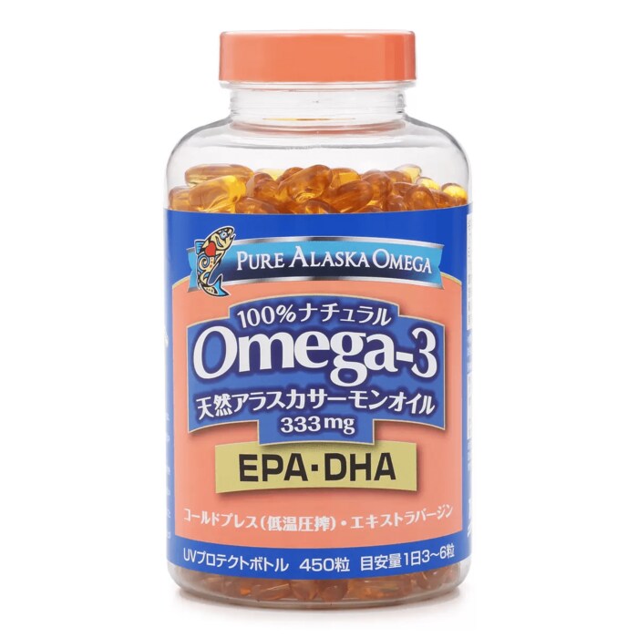 - 素材:鮭油(アメリカ)、ゼラチン/グリセリン、酸化防止剤(ビタミンE)、(一部にさけ・ゼラチン・大豆を含む)